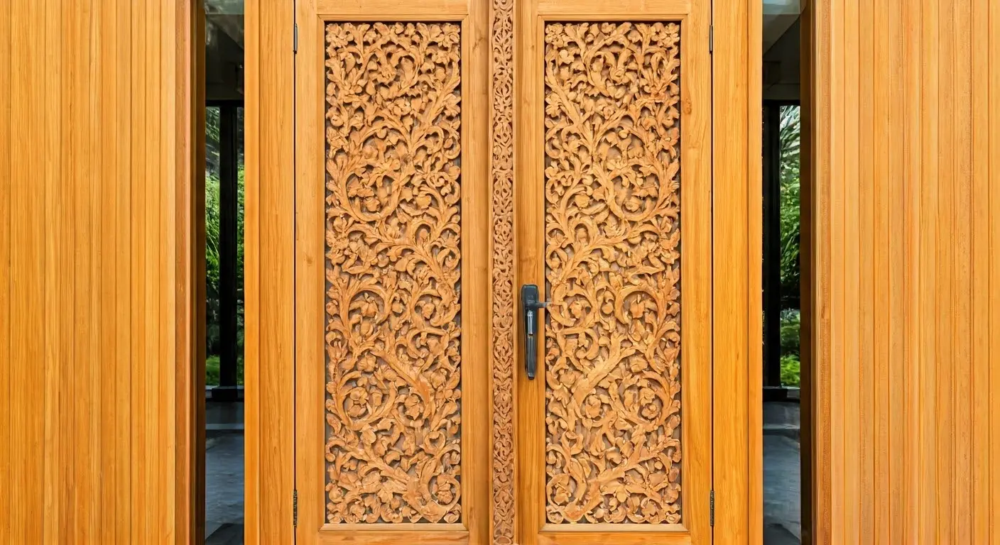 Carved Teak Wood Doors – Modern & handcrafted, customizable to your design preferences.